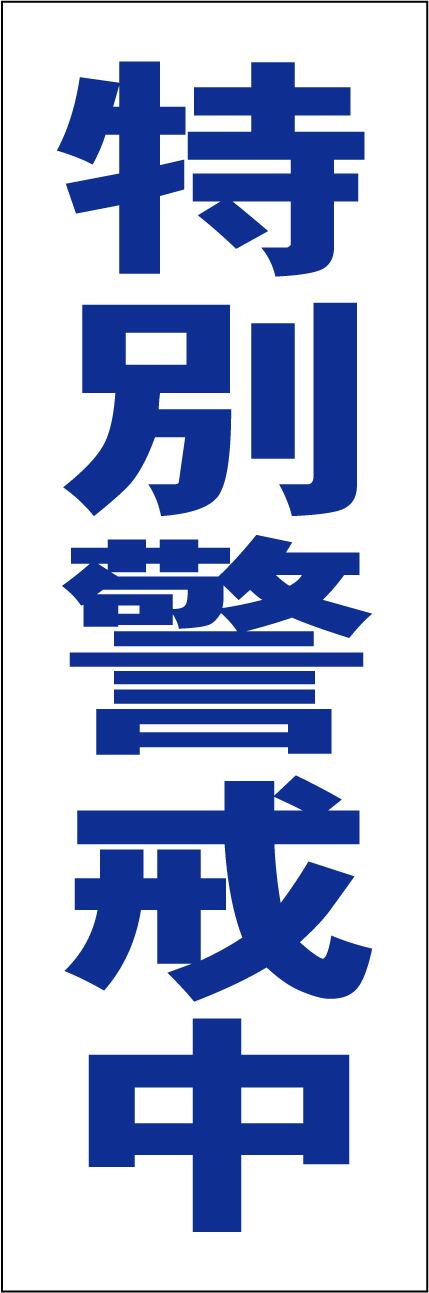 シンプル短冊型看板「特別警戒中(青)」【防犯・防災】屋外可