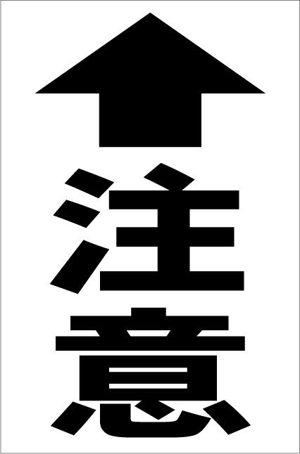 シンプル縦型看板 「注意↑(黒)」【工場・現場】 屋外可
