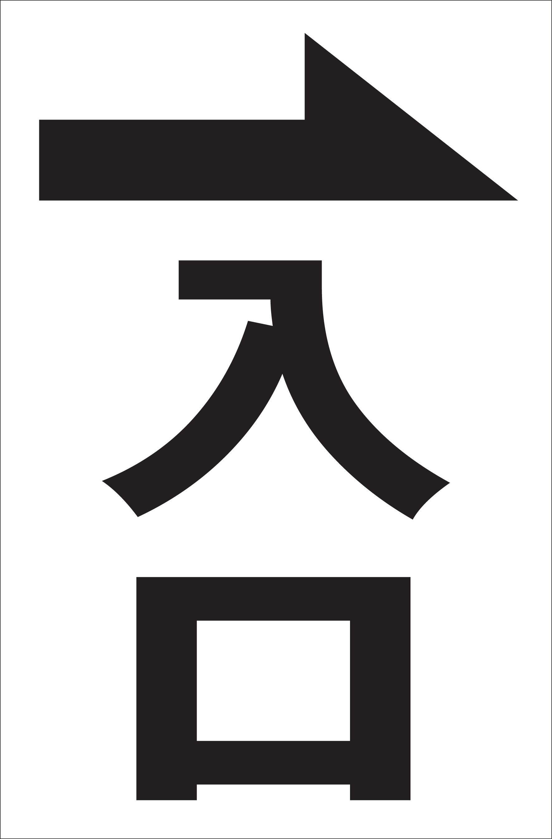 シンプル縦型看板 「入口(黒)右矢印」【駐車場】 屋外可