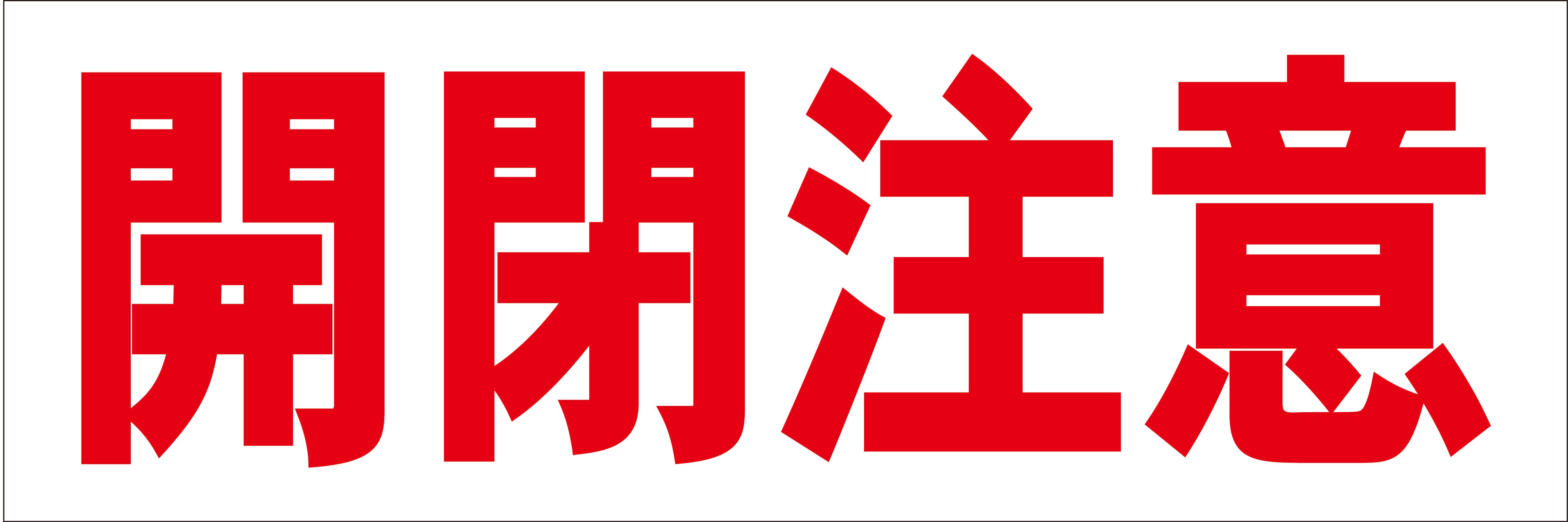 シンプル横型看板ロング「開閉注意(赤)」【工場・現場】屋外可