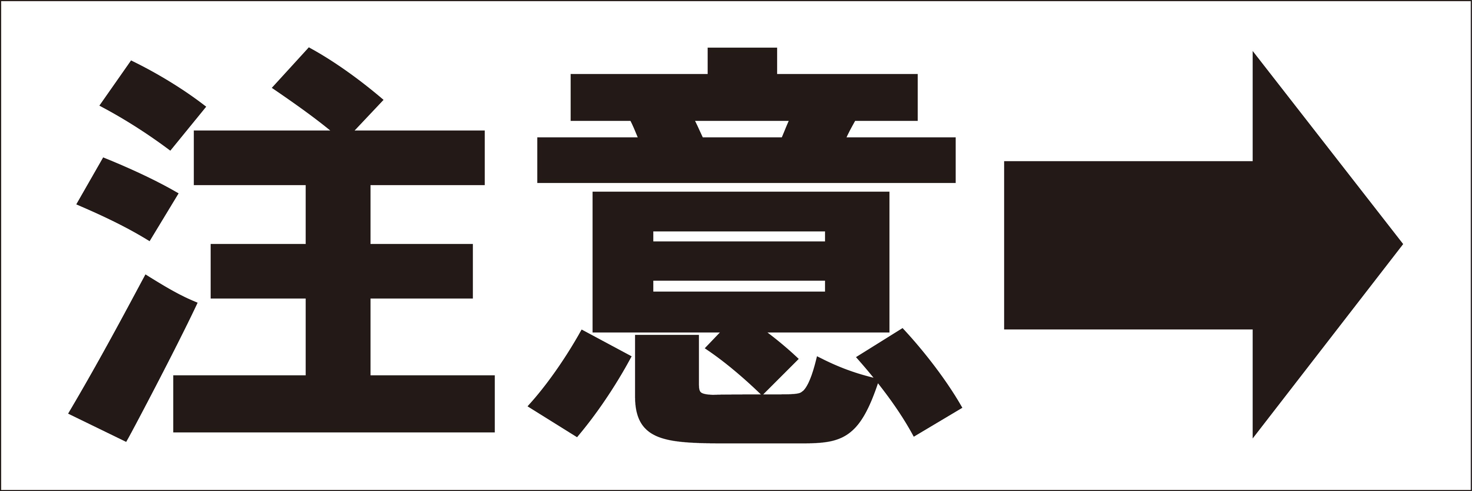 シンプル横型看板ロング「注意↑(黒)」【工場・現場】屋外可