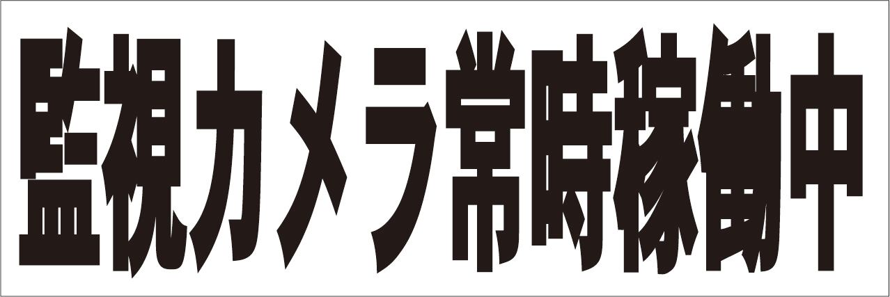 シンプル横型看板ロング「監視カメラ常時稼働中(黒)」【駐車場】屋外可