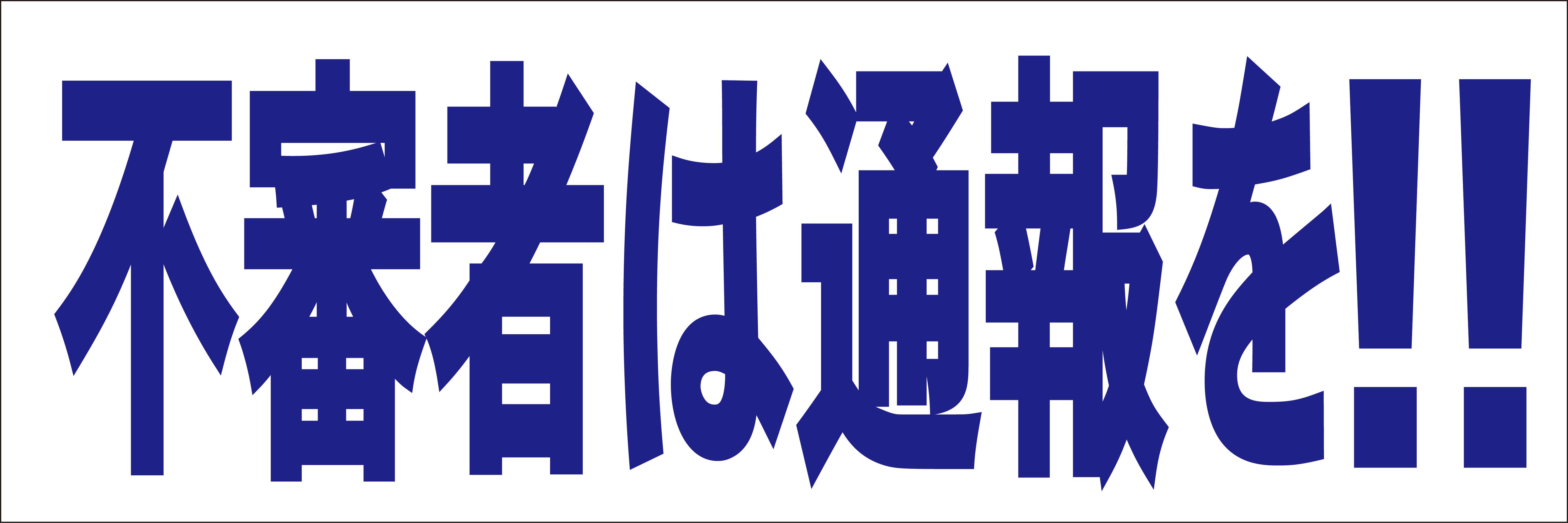 シンプル横型看板ロング「不審者は通報を(青)」【防犯・防災】屋外可