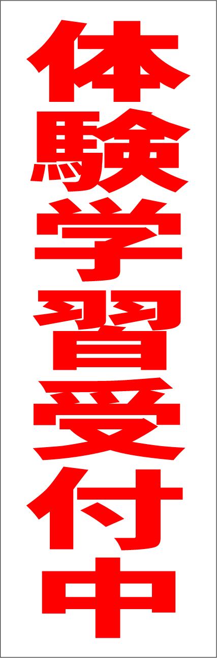 シンプル短冊型看板ロング「体験学習受付中(赤)」【スクール・教室・塾】屋外可