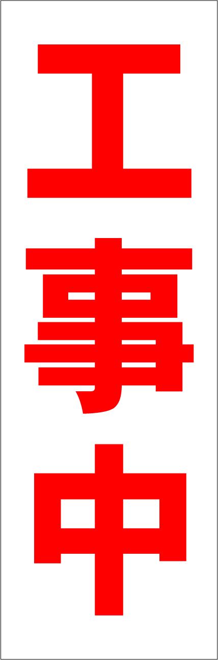 シンプル短冊型看板ロング「工事中(赤)」【工場・現場】屋外可